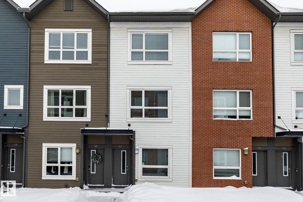 Excellent opportunity for this value priced and nicely upgraded unique 3 storey townhome perfectly located in central Edmonton's much desirable and award-winning family neighborhood of GRIESBACH. This spacious 2 bedrooms + den, 2.5 baths features an impressive, bright & spacious open floor plan with 9 ft. ceilings and oversized windows, and over 1330 sq.ft. gorgeous living space year-round. Trendy upgraded open kitchen with Island, granite counters, stainless steel appliances and open to the spacious Living and dining room. Upper level Primary bedroom feature double closet and a 3 pcs ensuite bath. Large second bedroom, full size 4 pcs main bath and laundry closet. Den and a 2 pcs bath right off the entry foyer. Oversized garage has water outlet, extra storage space and full driveway to park a second car. Beautiful & quiet location next to community pond & park areas, easy access to city centre, major shoppings, schools, playgrounds, transit & more. Move in Ready